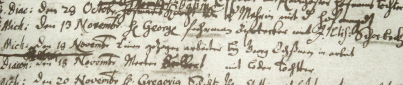marriagerecord on 13 Nov.1663  of George Fuhrmann and