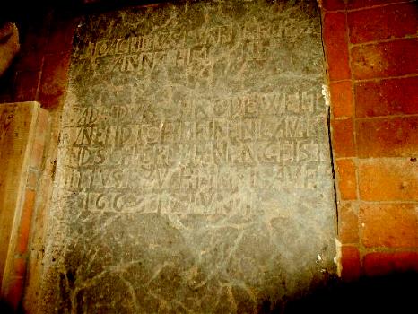 Seine Grabplatte ist eingemauert noch in der Kirche von Zedlin vorhanden; der Grabspruch auf dem Grabstein: