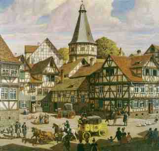 Ansicht der Stadt vom Marktplatz in Richtung Kirche