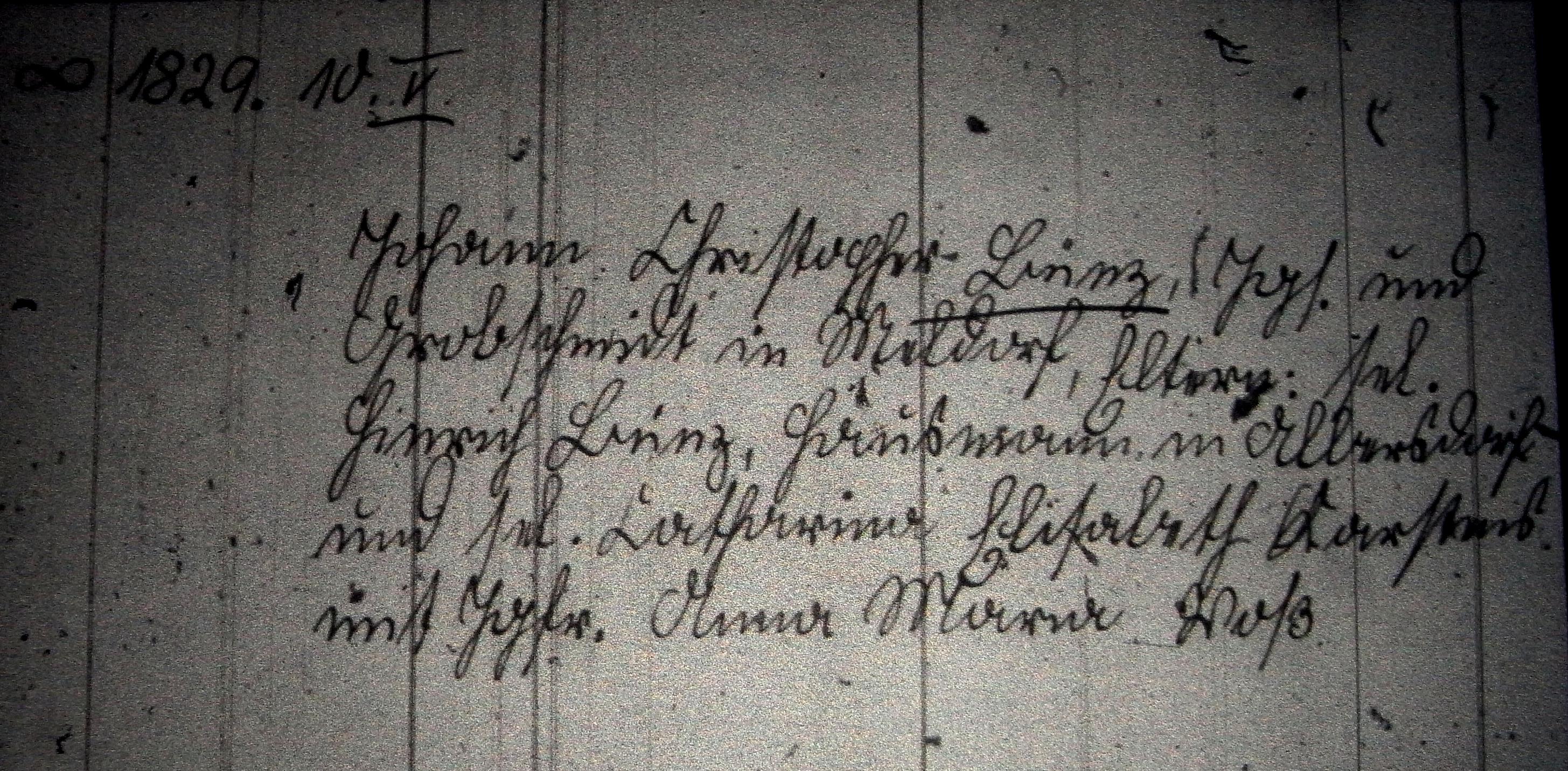 Heiratseintrag 1829 von Christopher Bünz in der Familienkartei Meldorf mit dem